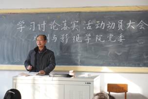 2014年12月25日上午,戏剧影视学院党委在5号楼201教室召开学习讨论落实活动动员大会。大会由学院党委书记车文明主持,学院全体党员参加。