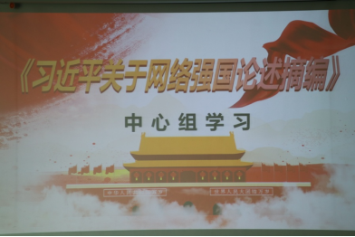 党委理论中心组于科学会堂302会议室组织开展了关于学习《习近平关于网络强国论述摘编》中心组会议。院党委书记李志荣,副院长孙俊士、王潞伟、王志峰以及党委委员吕文丽、孔美艳、袁楠,办公室主任邓弟蛟,组织员张海霞等参加了本次会议。会议由李志荣书记主持。