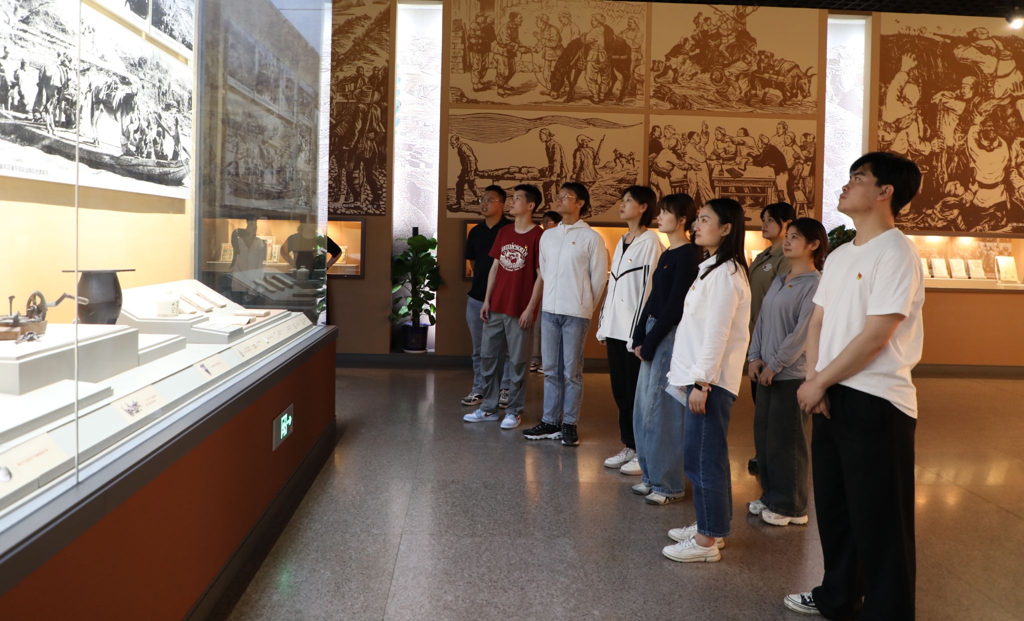 本次参观学习路线分为三个展区,分别是主展馆、将领馆、国家安全馆。在讲解员的带领下,师生们通过一幅幅珍贵的历史图片、一件件实物展品,感受在战火纷飞的年代,革命将领为实现民族独立英勇奋战的动人故事。师生们认真倾听讲解员的讲解,不时驻足凝视,被先烈们英勇无畏、不屈不挠的革命精神所感动。在纪念馆内,大家高举右手,面对鲜红的党旗,庄严宣誓,表达了对党的忠诚和对革命事业的坚定信念。
