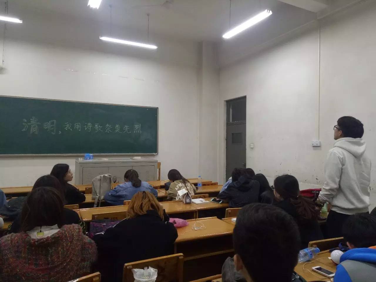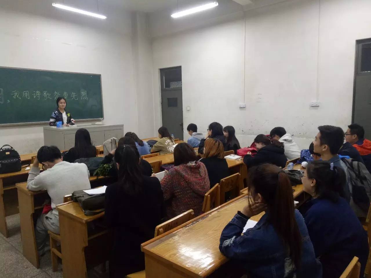 在这一值得纪念的日子里,院学生会的同学们用一种特殊的方式祭奠革命先烈。办公室、青年志愿者协会与新媒体的同学在教室中用吟诵诗歌、对诗歌进行了深刻的探讨来表达对先烈的怀念之情。