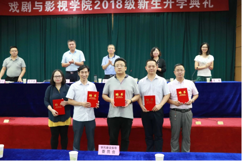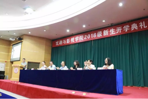 党委书记、院长延保全,院党委副书记、副院长王志峰,副院长孙俊士,戏文系主任陈继华,表演系主任刘于锋、院团委副书记袁楠等多位领导和老师出席了此次典礼。本次开学典礼由院办主任王潞伟主持,学院2018级全体新生参加。