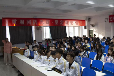 团委书记袁楠老师主持,全体大一学生参与。