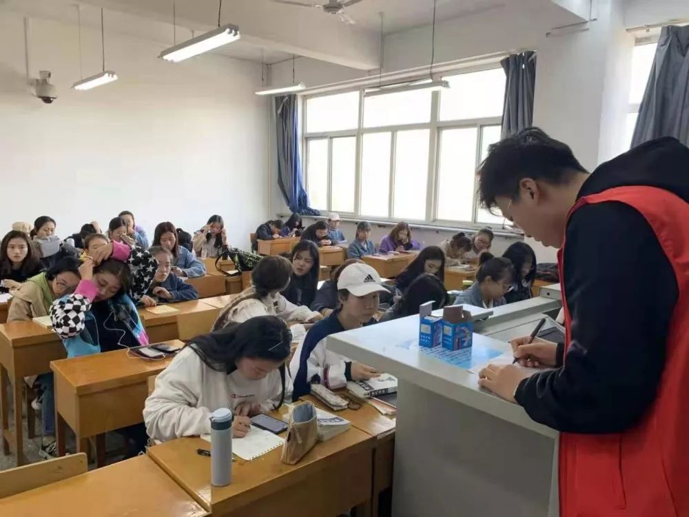 团委学生会学风督察工作人员准时到达教室进行了单周查课工作,向19240201班1-2节英语听力课进行检查。随后,对19240202班5-6节古代汉语课进行检查。