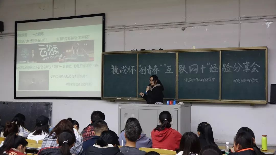 于11月23日下午与数学与计算机科学学院共同举办“挑战杯、创青春、互联网+”经验分享会活动。此次分享会由数学与计算机科学学院科创部部长韩雯钰、数学与计算机科学学院邢佳佳学姐与高媛媛学姐主讲。