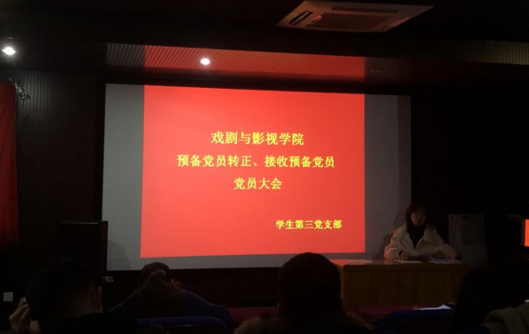 学生第三党支部在科学会堂视听室召开预备党员转正大会,会议讨论表决康钧同志和李璇同志预备党员转为正式党员的问题。会议由支部书记袁楠主持,全体党员参会。
