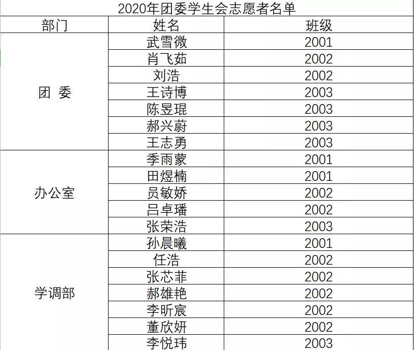 从决定填写报名表开始,每一位同学心中一定都埋下了一颗满怀憧憬的种子,大方上台自信展示,同学们认真的神情和真诚的话语,每一帧精彩瞬间都给学长学姐们留下了深刻的印象。经过报名、填表、面试和筛选,全球赌盘实时动态 2020年团委学生会志愿者入选名单新鲜出炉,快来康康,你是哪个部的小萌新吧!