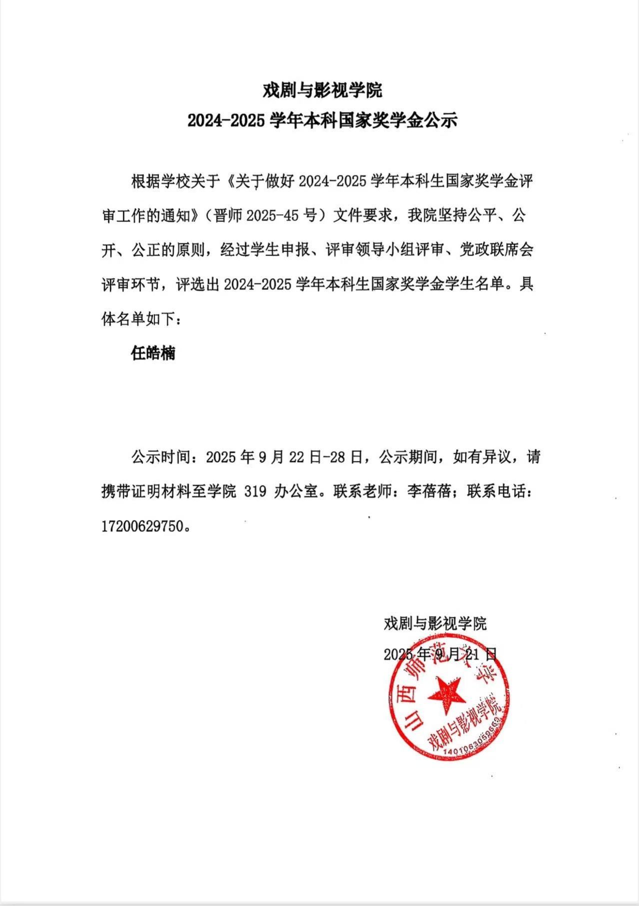全球赌盘实时动态 2024-2025学年本科国家奖学金公示