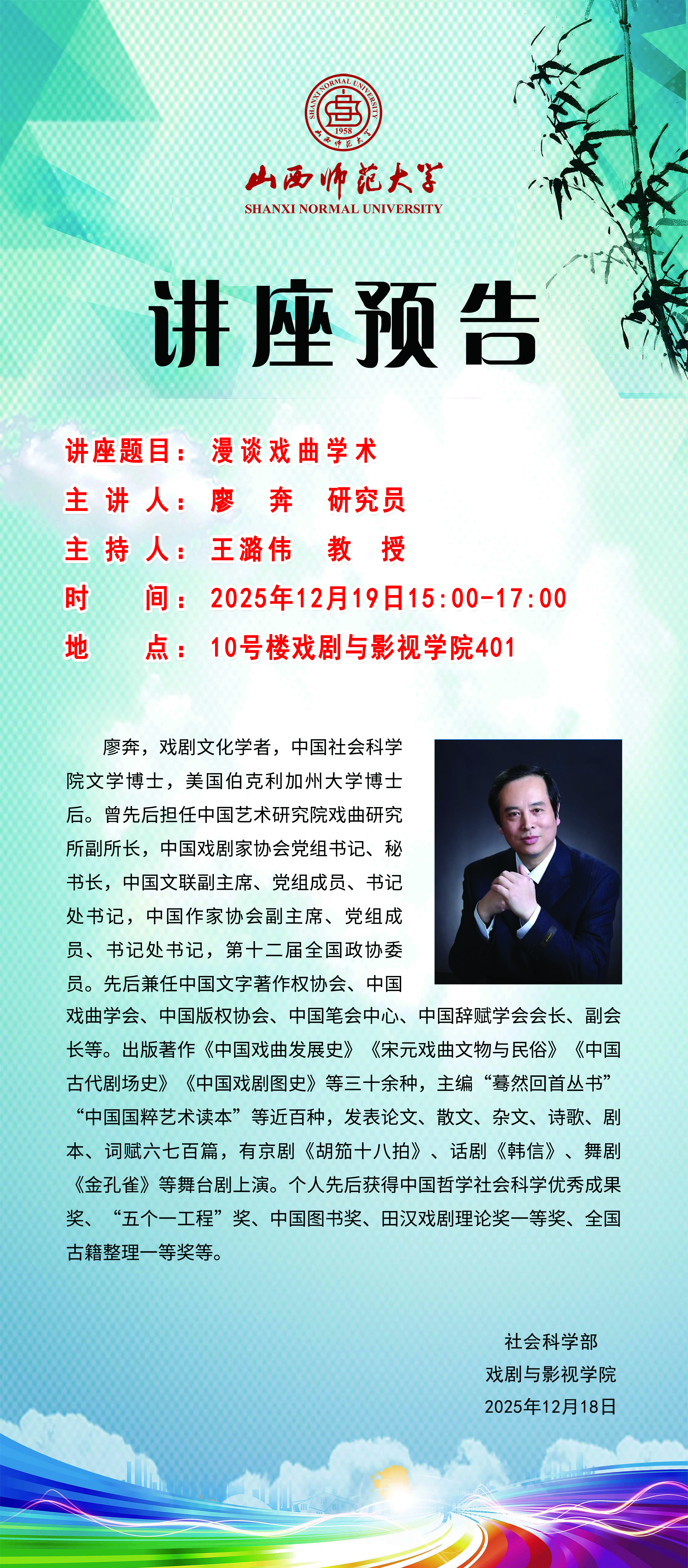 《漫谈戏曲艺术》讲座预告