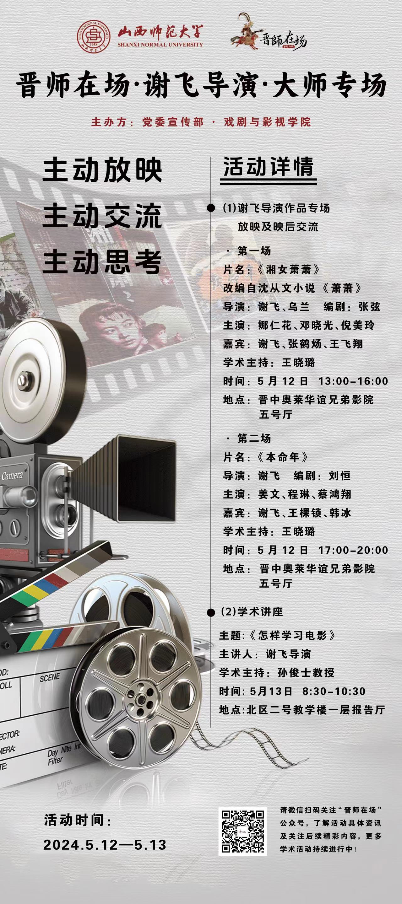 全球赌盘实时动态 联合党委宣传部将于2024年5月12—13日举办“晋师在场·谢飞导演·大师专场”放映活动与学术讲座。