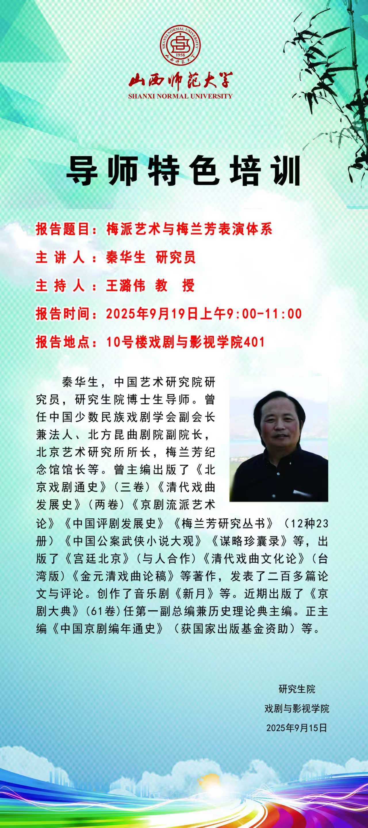 《梅派艺术与梅兰芳表演体系》讲座预告