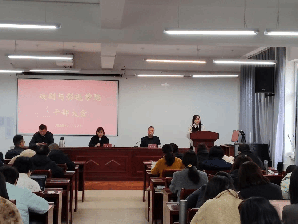 在210会议室召开干部宣布大会。校党委组织部副部长李企婷出席会议,院领导班子成员及全体教职工参加会议,会议由院党委书记畅海桦主持。