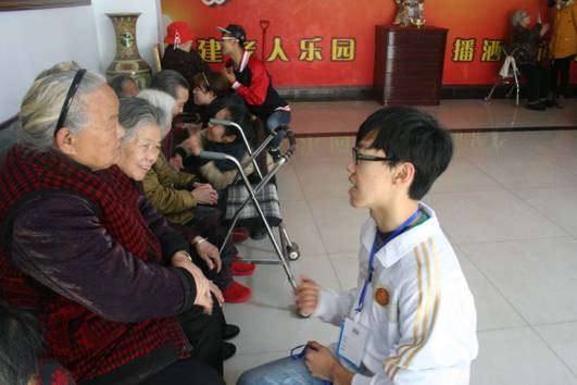 活动正式开始,同学们按照原定分好的小组到各层与老人聊天、为老人打扫卫生、帮他们捶捶背,有些性格开朗的老人当聊到兴奋时还会高歌一曲。老人们在聊天的过程中保持快乐的微笑,这也使我们感到非常开心和欣慰。随后,同学们为老人们献上精心准备的节目,大家都非常认真地完成每个动作,表演结束后,老人们给予了热烈的掌声。
