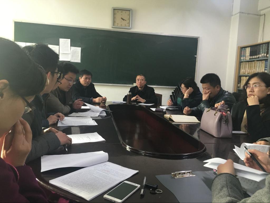 全体申报2017年度国家社科基金教师12名在科学会堂309室举行了申请书定稿前的最后一轮分析论证会,延保全院长参加,王志峰副院长主持会议。