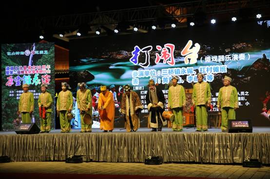 11月2日晚,延保全院长一行出席了由道真县人民政府主办的“三幺台”国家级非遗展演,观看了精彩的歌舞演出。11月3日,延保全院长一行又出席了“道真仡佬族苗族自治县成立三十周年庆祝大会”,观看了精彩的民族歌舞表演,而后在县有关领导的陪同下,参观了道真的傩文化博物馆,并出席了晚上七点举行的傩文化展演,观看了《打闹台》、《双开坛》、《山王破狱》、《度关》和《目莲救母》等优秀傩戏片段的表演。
