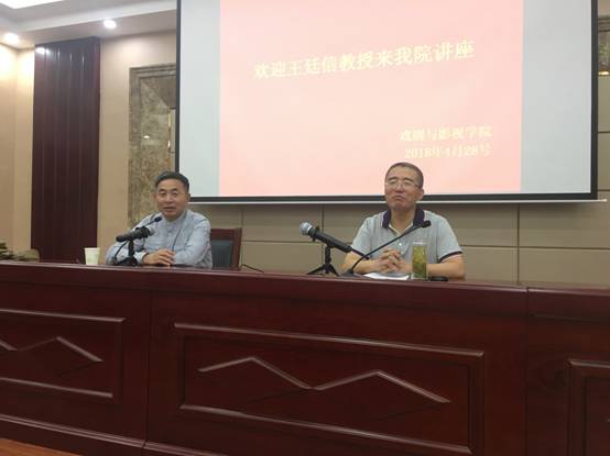 首先,延保全院长向参会师生介绍了王廷信教授的个人生活经历、治学过程以及学术成就。接下来,王廷信教授就“艺术理论研究的关键问题有哪些方面”这一问题,从三方面为大家进行的深刻的讲解:第一,学术文章的写作思路,如何选好题和提炼观点。第二,当下应该如何去做艺术理论的研究;第三,各个艺术门类之间的联系越来越密切,如何看待部分跨学科问题,如技术与艺术的关系等。最后王教授把话题进行引申,谈了如何结合中央文件精神提升学科发展。