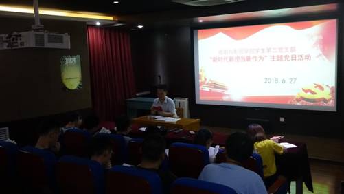 学生第二党支部组织党员于科学会堂视听教室开展庆祝中国共产党成立97周年主题党日活动,激励全体党员贯彻落实中央办公厅关于“新时代新担当新作为”的通知。此次活动由支部书记刘于锋老师主持,支部副书记朱瑶老师和全体学生党员同志参加了本次会议。