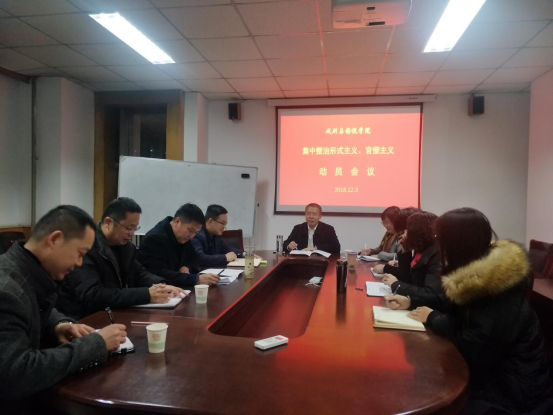 在A302召开“集中整治形式主义、官僚主义动员大会”,会议由院长、书记延保全主持,副书记王志峰、副院长孙俊士、各党委委员和各支部书记参加了动员会。