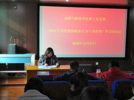 会议伊始,王老师传达了学校《关于认真开展<新时代高校教师职业行为十项准则>学习活动的安排意见》的通知精神,并阐述了《准则》出台的时代背景和重要意义,强调了当前师德师风建设的必要性和重要性。
