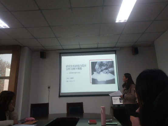 本次科研能力提升计划分别由孟晓辉、李改萍、续畅三位同志主讲。孟晓辉同志围绕“研究生科研能力现状分析与提升策略”进行主题讲解,讲解内容分三部分。在第一部分中孟晓辉同志介绍了对研究生科研能力的基本认识,第二部分她对当前研究生的科研能力从调查数据入手做了简要分析,第三部分提出了提升研究生科研能力的策略。李改萍同志对“科研能力提升计划之自我规划”进行了讲解。首先,她从本专业出发对文献学专业的学习情况进行梳理,并结合自身对文献学的学习方法进行了五点详细陈述。续畅同志也从自身的专业学习出发,结合“科研能力提升计划”的主题分享了自己的学习方法。全体党员对“科研能力提升计划”进行专题探讨,党员同志踊跃发言,提出自己的疑问。