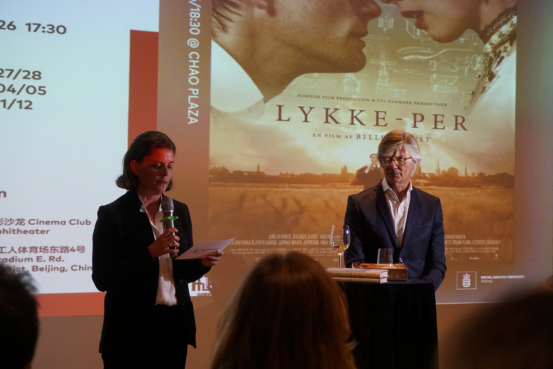 王棵锁老师应邀出席了由丹麦王国驻华大使馆、丹麦电影学会(DIF)共同举办的丹麦电影月开幕式活动。应邀出席本次活动的还有《幸运儿比尔》一书的中文译者,北京外国语大学客座教授、外交学院兼职教授甄建国及周永铭先生等。丹麦王国驻华大使馆副馆长海乐(Helle Meinertz)女士致开幕词,简短的现场交流后,与会者一同观看了导演比利·奥古斯特刚获得第九届北京国际电影节天坛奖最佳影片奖的《幸运儿彼尔》。