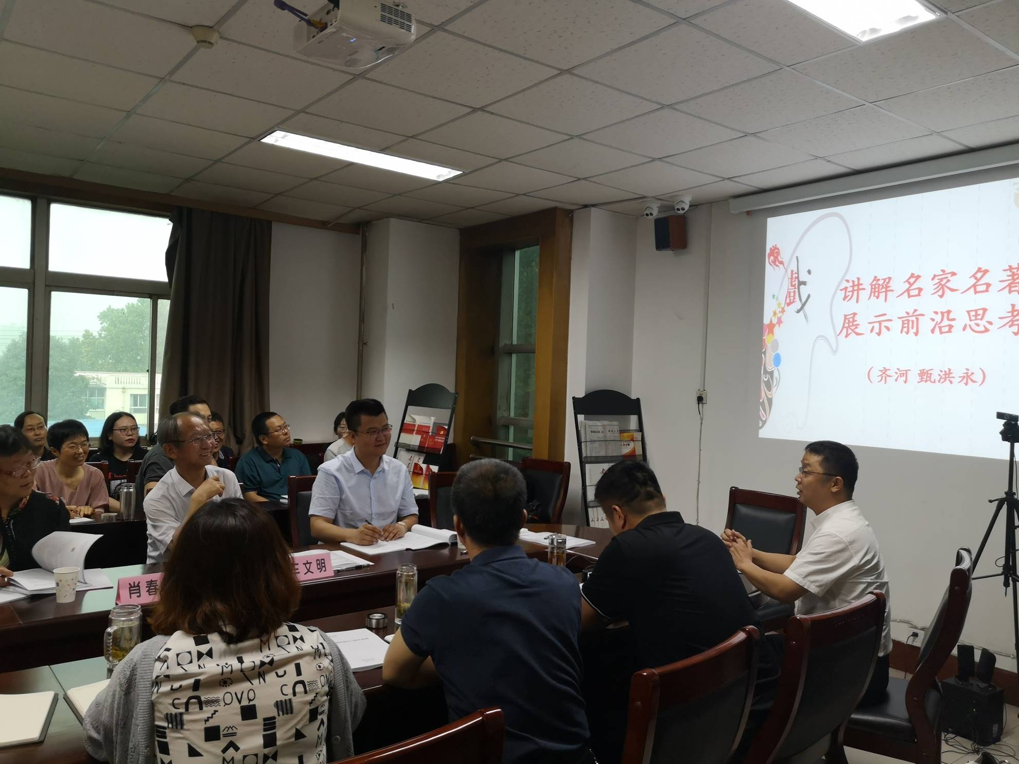 本学期线上教学的课程情况,介绍教师利用优质在线课程资源、在线教学平台和多媒体技术、创新在线教学方法和教学管理理念等方面的情况。随后,多位教师就自己上课情况分享经验。刘于锋老师介绍《戏曲鉴赏》昆曲唱腔艺术》课程在网络教学平台上的建设与教学情况;郝成文老师围绕戏剧教育的特点、教学经验与存在的问题进行交流,并提出要尊重学生成长、为学生的发展提供平台、鼓励为主、规范教学等;甄洪永老师对《编剧理论与技巧》课程,围绕讲解名家名著、展示前沿思考的问题,对如何把科研成果转化为教学成果提供了良好的案例;孟伟老师主要就《中国文化通论》如何进行启发式教育与过程考核等方面的问题进行交流;简超辉老师就《摄影与摄像》《剧本创作》课程在线上教学的方法以及课堂实践提供较好的方法;王棵锁老师提出如何构建有情怀、有温度的课堂,课堂教学不仅是传授知识,更重要的是提高能力。教师要有耐心和责任心;翟琦、吴迪两位老师就表演专业课的学习方式、教学特点以及如何通过情景带入等方式调动学生学习的积极性提供良好了的经验。