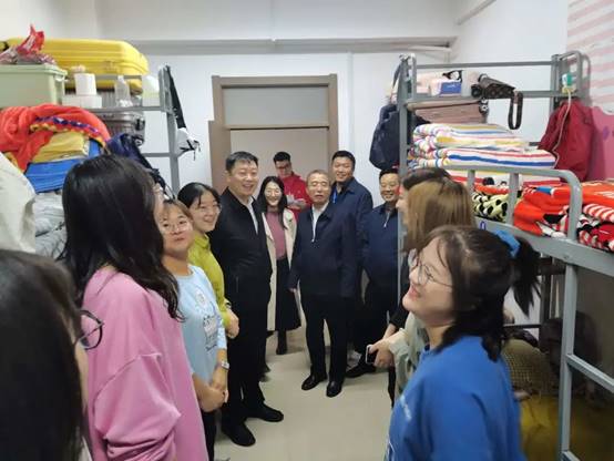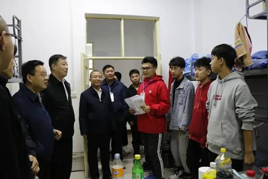 党委书记李志荣老师、院长延保全老师,副院长孙俊士老师、王潞伟老师,邓弟蛟老师一同前往新松新生宿舍慰问新生,详细了解新生的住宿情况,并对新同学的学习生活给予殷切嘱托。