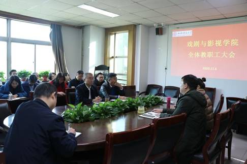 在科学会堂A302室召开全体教职工大会。本次会议由院党委书记李志荣主持,院长延保全、副书记杨谨瑜、副院长孙俊士、王潞伟及(除当天有课的教师之外的)全院教职工参加了会议。