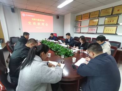 在科学会堂A座302会议室召开党政联席会议。出席会议的有院党委书记李志荣、副院长孙俊士、王志峰、王潞伟、党委委员吕文丽以及办公室和学生会的负责人。