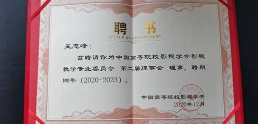 王志峰教授被聘任为中国高校影视学会影视教学专业委员第二届理事会理事。