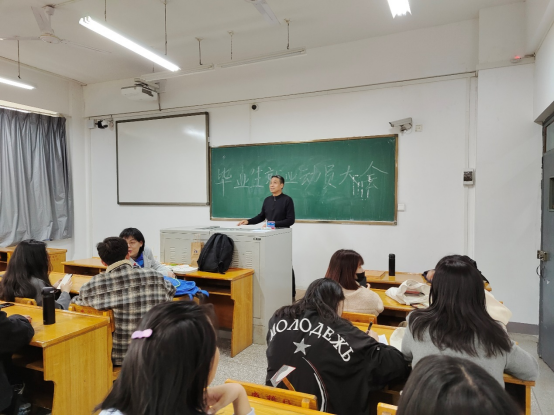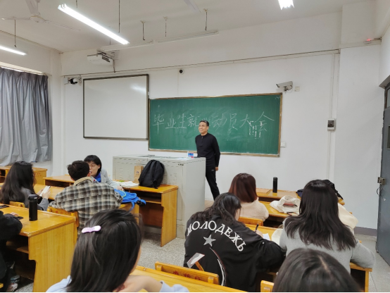 1702、1703戏文班辅导员郭文顺老师就给毕业生召开就业动员主题班会,会议由班长王鹏飞主持,辅导员郭文顺老师出席,17级戏文全体学生参加了会议。会上郭文顺老师对同学们提出以下三点要求:首先是务必把握住这次宝贵的机会,认真对待,在选择工作时要把目光放长远,制定未来的规划,选择符合自己未来发展规划的工作。第二是要在双选会之前精心准备,提前制作自己的简历,突出自身专业优势和个人特色。第三是准备继续考研的同学,要在茫茫毕业生大军中坚定自己方向的同时,做好两手准备,找工作与升学双管齐下,为自己的未来画好蓝图。
