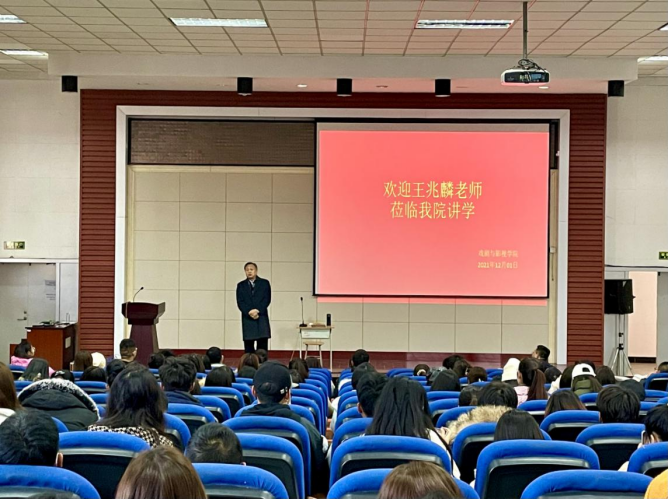 最后,副院长王潞伟为本次讲座做出了总结,为同学讲述了此次讲座的感受,称这是他听过“最有意思”的讲座,王兆麟老师绘声绘色的讲学形式使他久久不能忘怀,希望这次的讲座能在在场的师生心中种下一粒语言艺术的种子,在以后的学习中能运用到本次讲座的知识内容,能够像王老师一样做到用语言去散发出作品所承载的独特魅力。