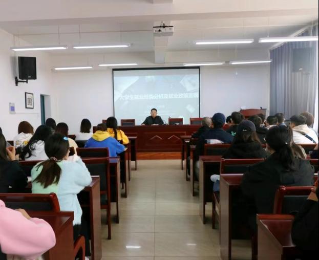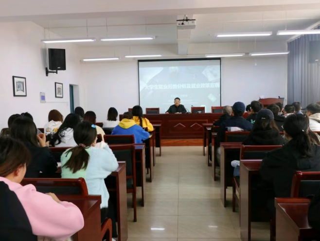 举办了2023届就业指导专题宣讲会,院党委副书记宁志恒老师以“大学生就业形势分析及就业政策宣讲”为题进行讲授,19级毕业生参加了宣讲会。