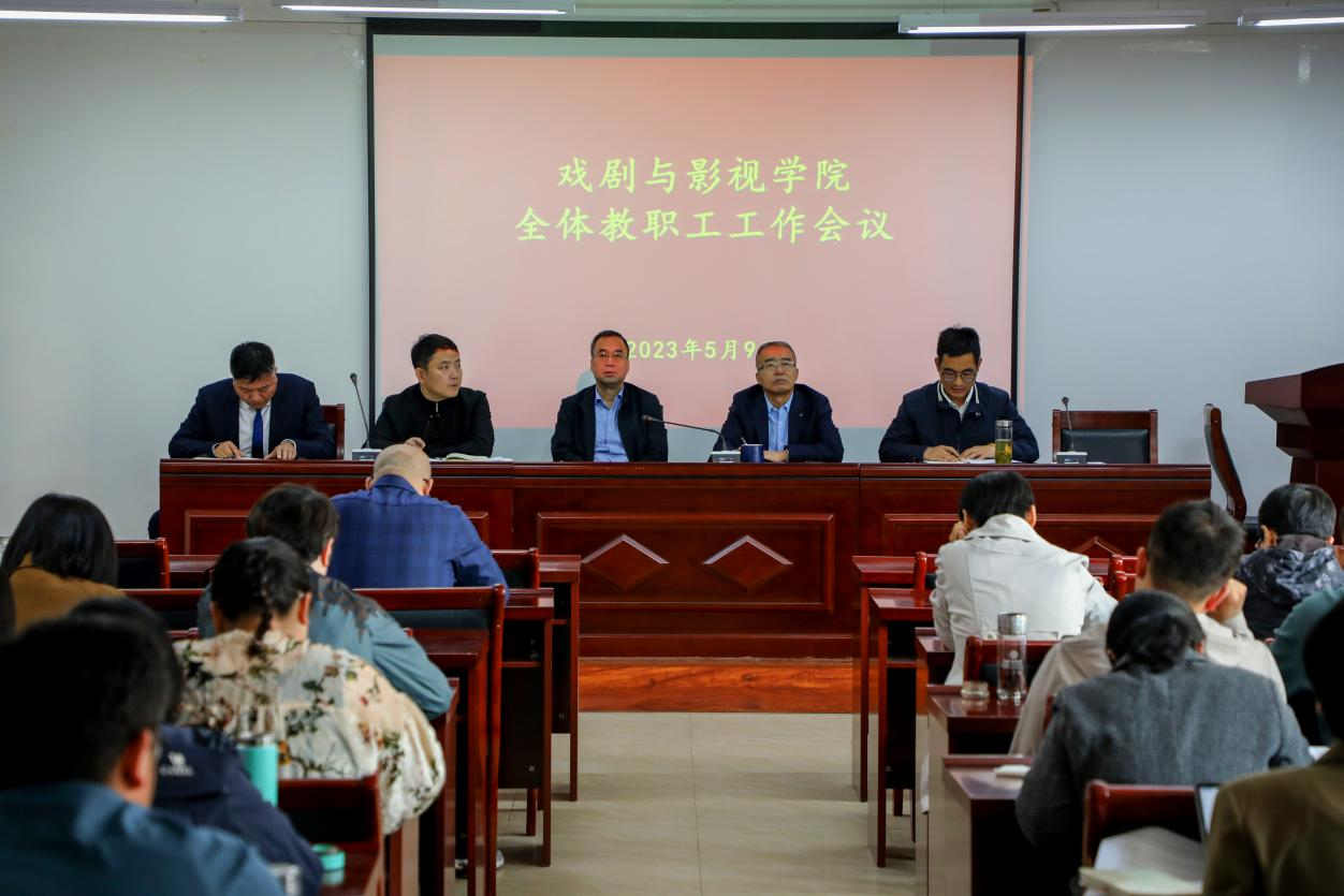 会上,宁志恒副书记最先传达了高考评卷任务和疫情防控的最新情况,提醒大家注意时间节点,做好工作安排。孙俊士副院长就修订培养方案、提高教学质量、重视毕业论文事宜做了规划和要求。颜汇成副院长就学校巡查工作、师德师风建设、意识形态工作,以及资料室整理、创作中心建设、梆子戏传承基地等具体事宜向大家做了汇报,希望各位教师能够主动参与相关工作,为学院的各项建设出一份力。党委书记畅海桦表示,5月8日,党政联席会议通过了《集体活动条款》,教职工应该切实履行参加集体活动的职责;为了更好地开展主题教育活动,学院将于6月上旬安排全体教职工赴左权县麻田八路军总部纪念馆开展主题教育学习。延保全院长重新强调了各项工作中应该注意的问题,提醒大家认真对待主题教育活动、硕博士毕业论文答辩、相关意识形态以及师德师风建设工作,心系学院,加强集体凝聚力。