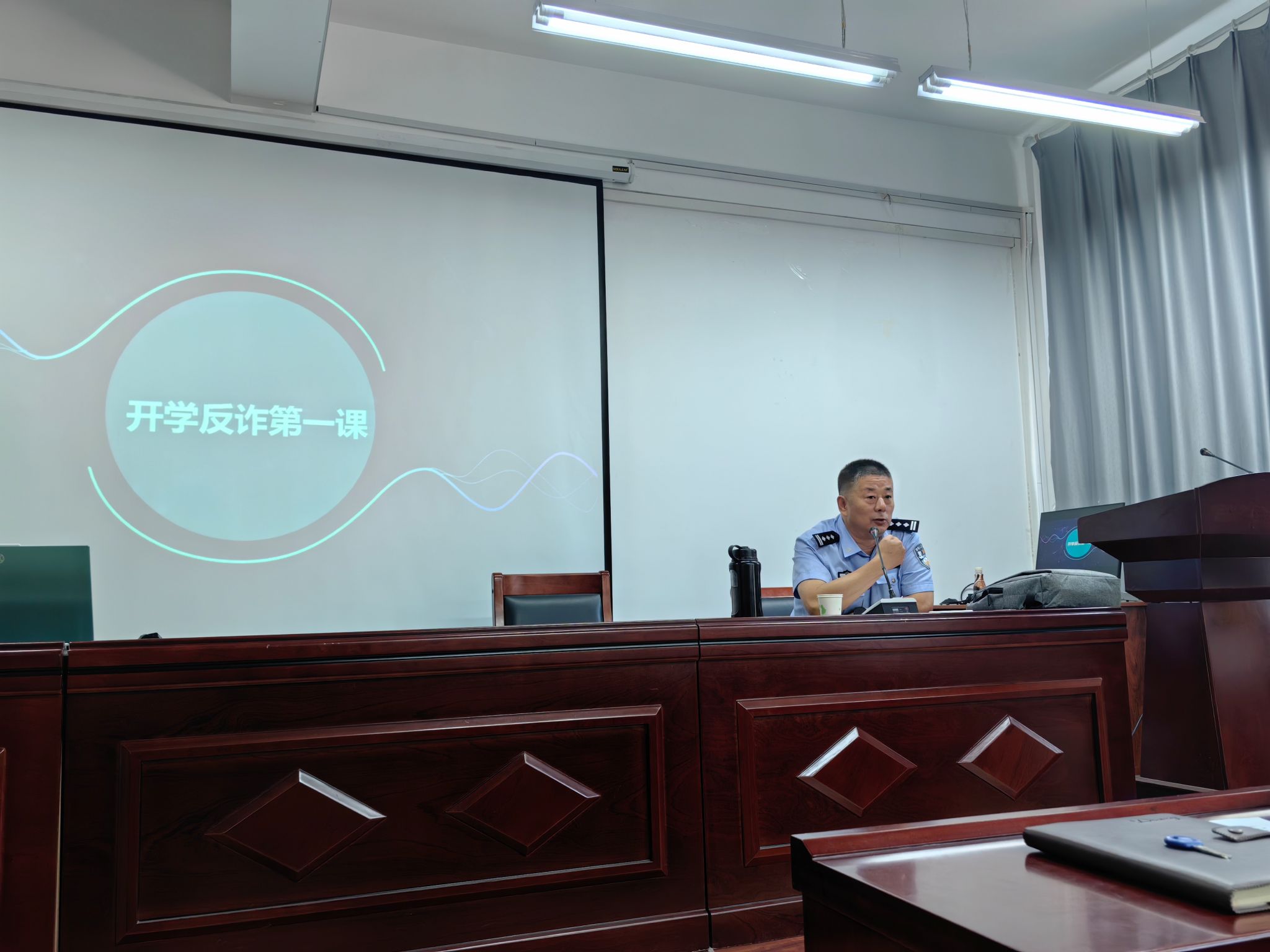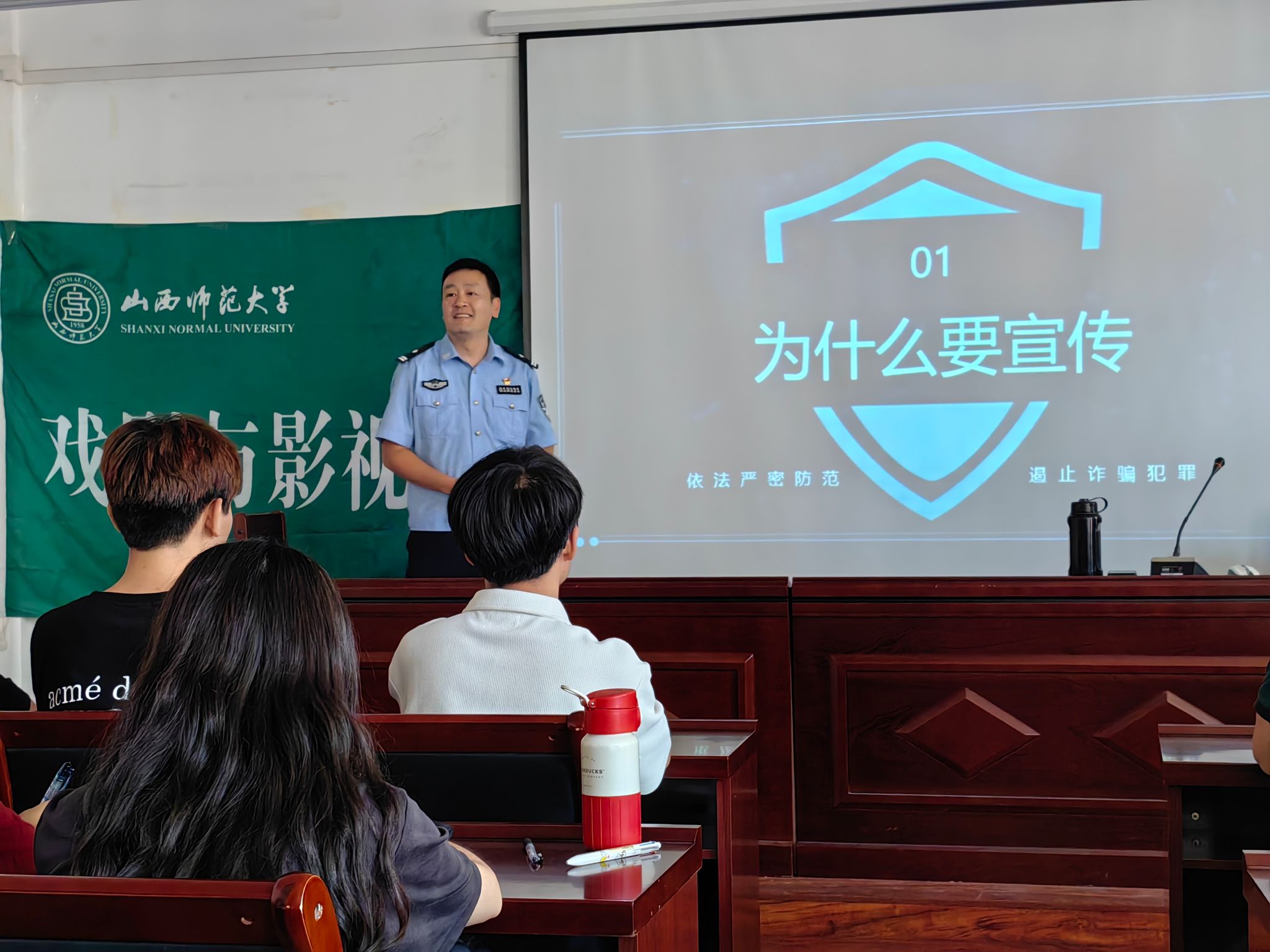 加强安全教育,筑牢防诈反骗“防火墙”。太原市公安局刑侦大队副中队长单仁浩和直属分局文保大队一级警长张洪源以《开学反诈第一课》为主题,结合近期多起高校真实案例,围绕当前电信诈骗发案形势及特点、常见诈骗类型、防诈秘笈等方面展开科普教育,呼吁广大新生提高警惕,警校联合,共同筑牢防诈反骗校园防线。