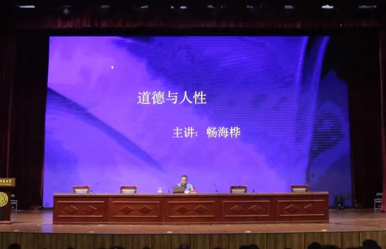 坚持思想引领,高擎理想信念“指明灯”。院党委书记畅海桦作了题为《道德与人性》的主题讲座。讲座以理想信念为核心,以社会主义核心价值观为引领,引导新生自觉做习近平新时代中国特色社会主义思想的坚定信仰者、忠实实践者。畅书记用老人倒地扶不扶的典型社会现象引出此次讲述内容,并深度结合儒学家孟子和荀子的人性论,向同学们深入浅出的阐述了道德的产生、内涵与外延,从而引申出人性和道德的关系。