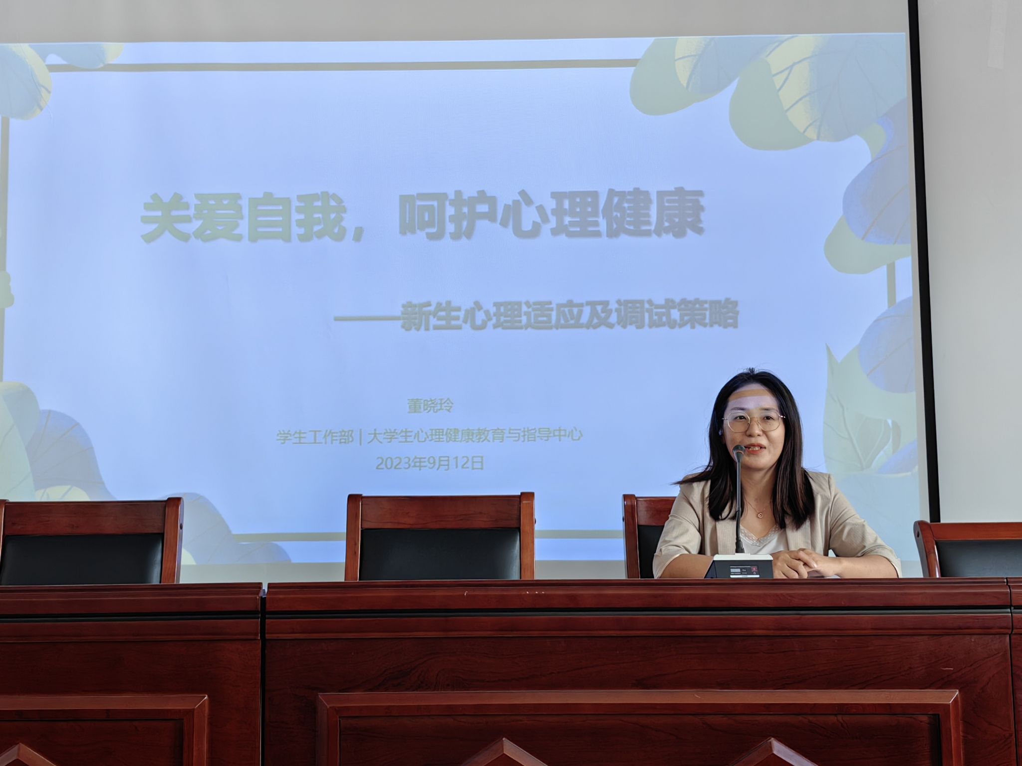 关注心理健康,锻造身心和谐“调节阀”。校心理健康中心董晓玲老师以《关爱自我,呵护心理健康》为主题,为新生上了一堂生动、新颖的心理课,她从大学生活适应、人际交往和职业发展路径出发,以看图片、讲案例、互动交流等方式引导学生培养正确的自我认知能力、良好的情绪调控能力和社会适应能力。讲座对于新生自我情绪的控制、心理健康理念的树立、健康生活方式的养成起到了积极的促进作用。