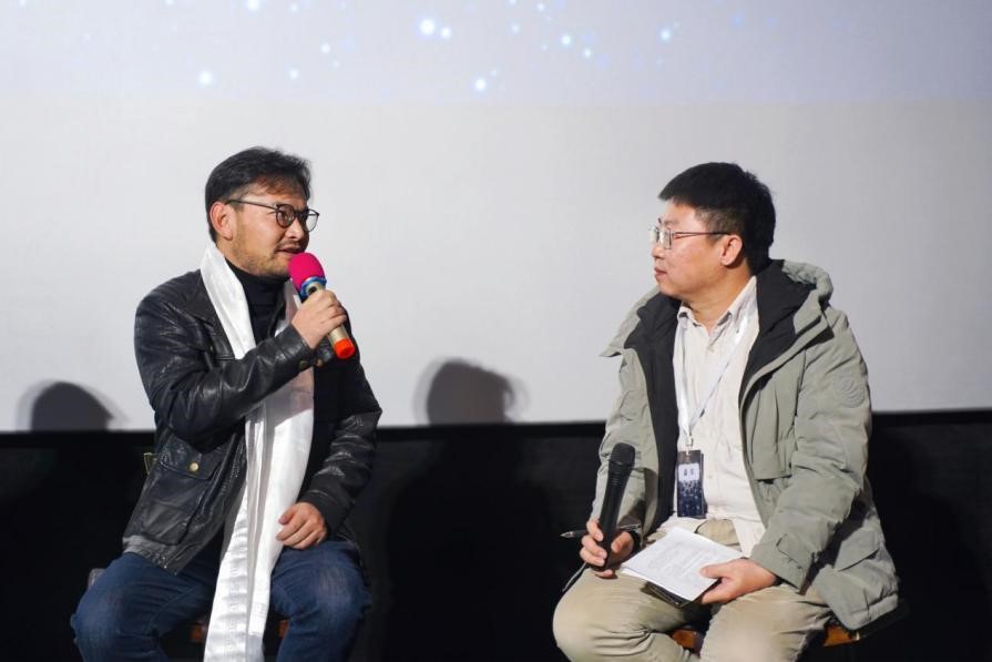 本次活动放映影片《千里送鹤》是由万玛才旦监制,拉华加导演,周拉多杰、朋毛样专、尕代扎西主演的藏族儿童题材的影片,讲述藏族少年为受伤的黑颈鹤和自己的内心寻找栖息地的故事。电影放映结束后,观众们针对影片剧作细节和创作流程等方面踊跃提问,现场气氛热烈活跃,使同学们了解到更全面的行业前沿知识,活动为同学们展现了一线电影制作人的魅力与风采。