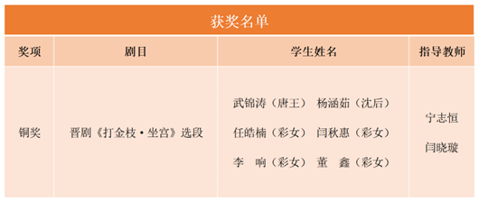 晋风党支部报送的晋剧《打金枝·坐宫》选段荣获京外业余组铜奖和优秀组织奖。