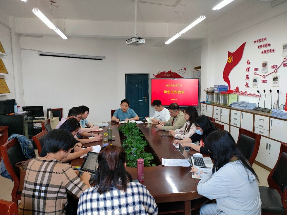 在201会议室召开2023-2024学年第二学期学生工作会议。会议由院党委副书记宁志恒主持,全体辅导员出席会议。