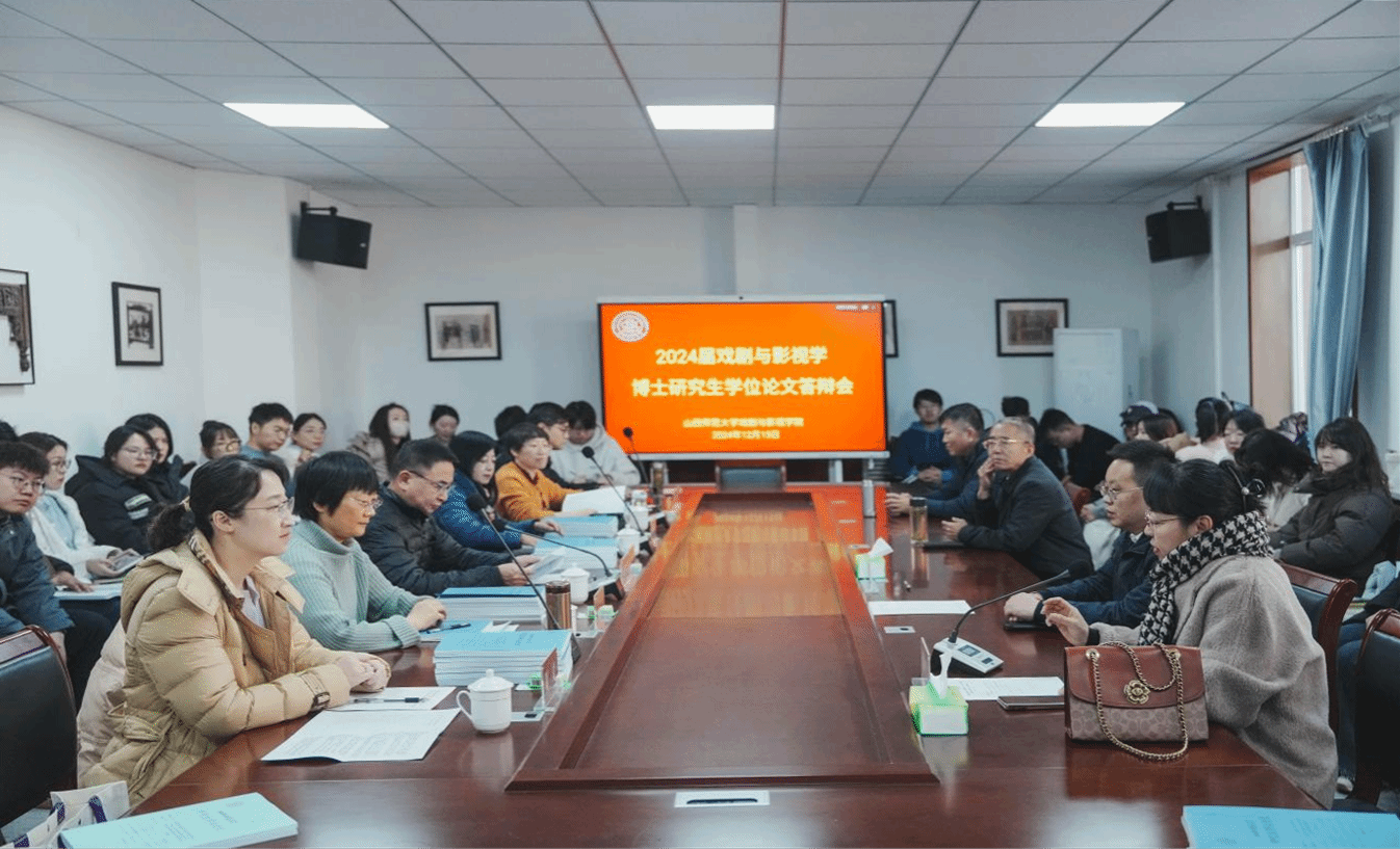 2024届博士研究生毕业答辩会在 401 会议室如期举行。答辩委员会由中国传媒大学王廷信教授担任主席,山西大学梁晓萍教授以及山西师范大学周婧教授、吕文丽教授、张勇风教授担任答辩委员会委员。