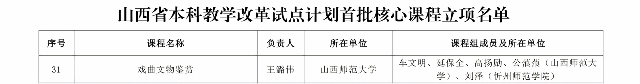 王潞伟教授团队申报的课程《戏曲文物鉴赏》荣获山西省本科教学改革试点计划首批核心课程立项。