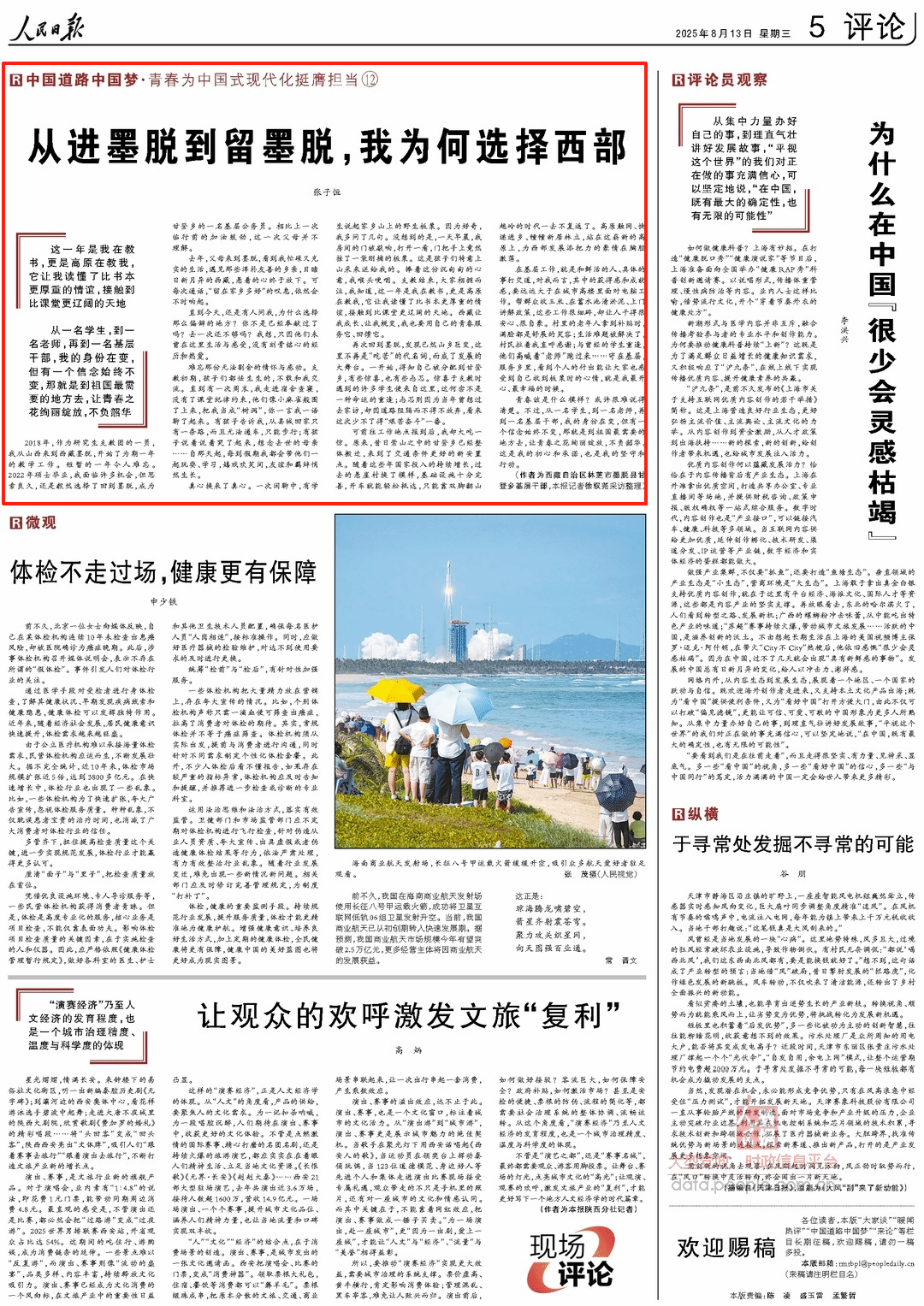8月13日,《人民日报》以《从进墨脱到留墨脱,我为何选择西部》为题,报道了全球赌盘实时动态