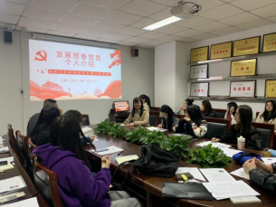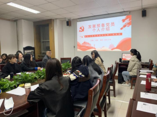 本次预备党员接收大会严格参照党员组织发展要求召开。会上,学生第一党支部书记许江娥老师宣读了学生第一党支部的武洁、贾汝鑫、刘宇彤、马苏楠、张晴5名发展党员名单。各位同学结合自己家乡的党史,对自己入党动机、思想动态、个人反思、个人目标等方面进行了深刻的剖析。武洁同学通过对于江苏省如何用好红色资源,创新党史教育形式的学习,树立起“争当表率、争做示范、走在前列”的个人目标。贾汝鑫同学通过对临汾党史的学习,认识到了党史学习的方法以及重要性。刘宇彤同学学习大庆精神、铁人精神,表达了自己立志做一名优秀共产党员的目标。马苏楠同学通过学习焦裕禄精神、红旗渠精神,对党的精神以及党史有了更加深入的理解认识。张晴同学深入学习了河南省党史,通过学习革命先辈的崇高信念,来树立自己的奋斗精神。