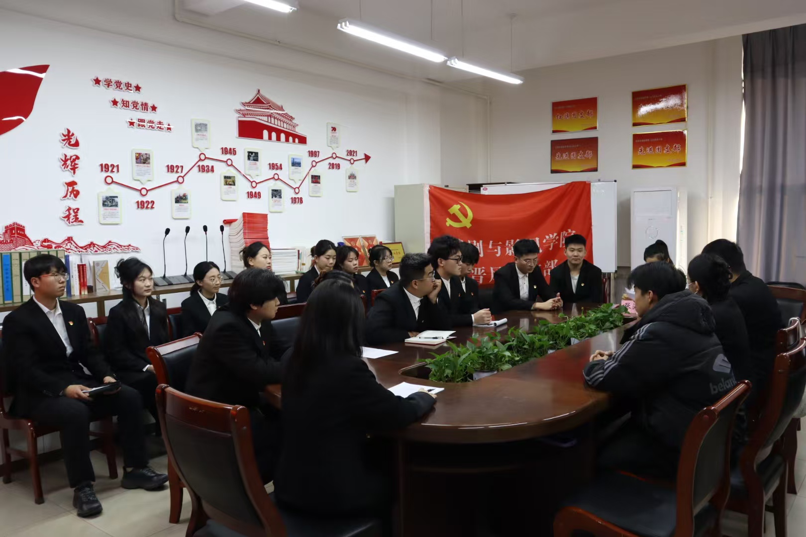 晋风党支部在学院201会议室召开党员大会,讨论武锦涛等14名预备党员转为正式党员事宜,会议由党支部书记宁志恒主持。