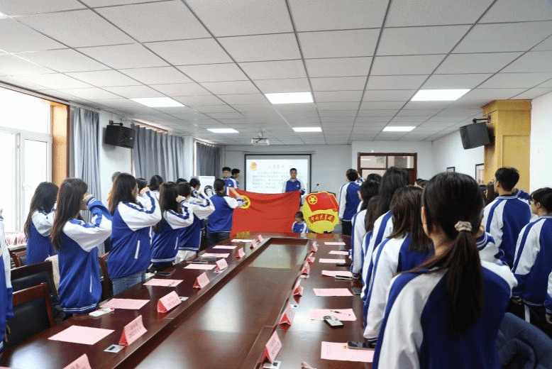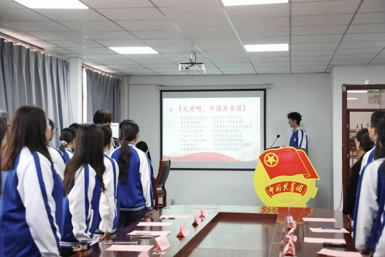 第二项,在领誓人贾姚棋的引领下,新团员们高举右拳,发出了激昂的誓言,这誓言既是同学们对中国共产主义青年团的庄严承诺,更是新一代青年的责任与担当的体现。