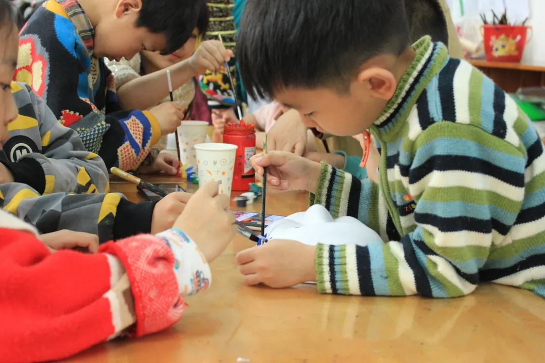 之后,学生志愿者们还用事先准备好的空白脸谱面具与小朋友们共同绘制戏曲脸谱,脸谱绘制完成之后,小朋友们拿着自己的作品争相展示,场面欢乐而又充满童趣。