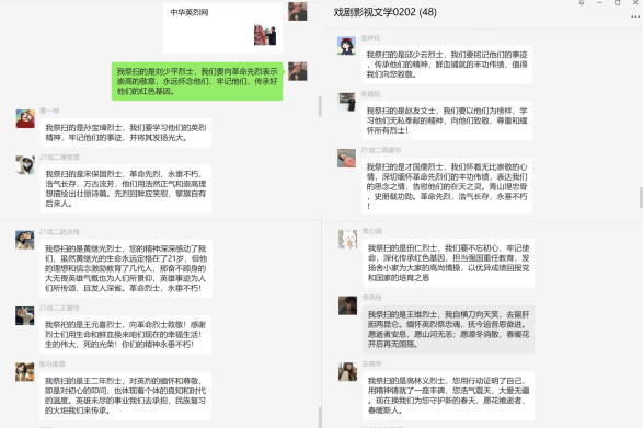 各团支部积极准备,通过观看主题微视频、讲解先烈故事、烈士诗抄朗诵、网上祭英烈等多种形式,引导团员青年在慎终追远、缅怀先辈的情怀中增进爱党、爱国、爱社会主义的情感。