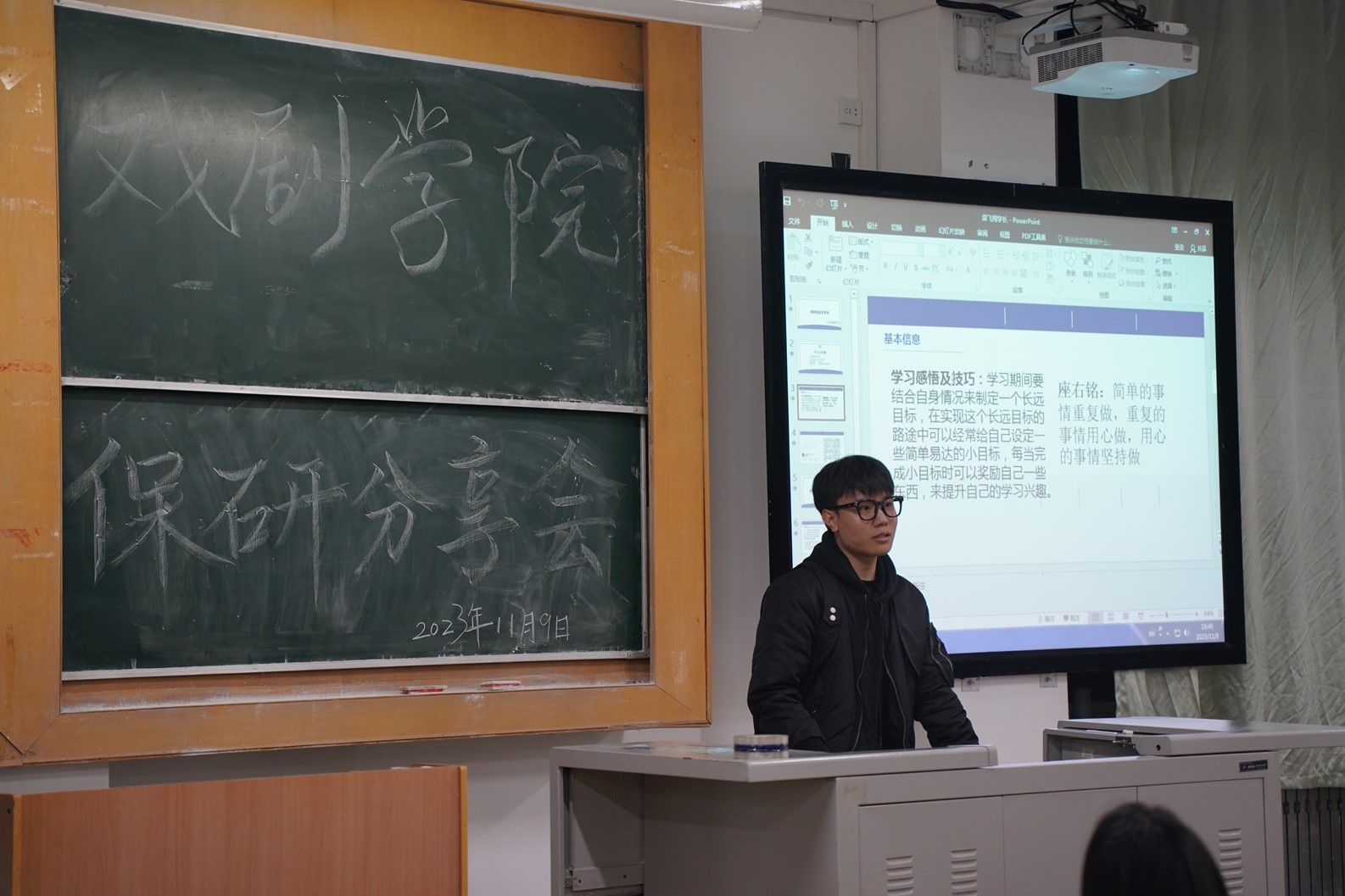 于3108教室举办了保研经验分享交流会。本次会议由2023级本科生张楚楚同学主持及2021级、2022级和2023级部分同学线下参与。