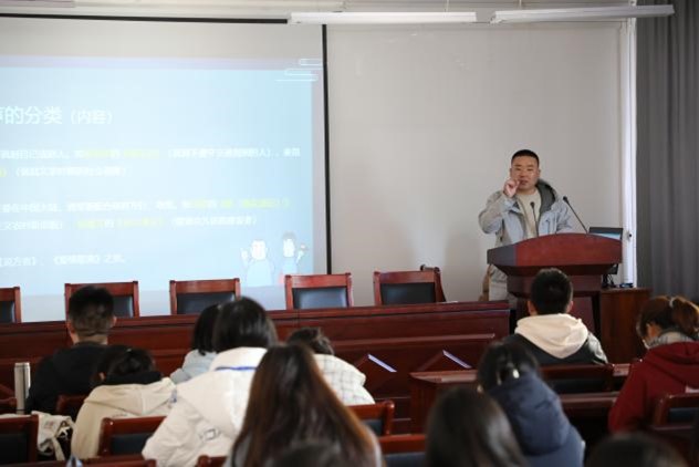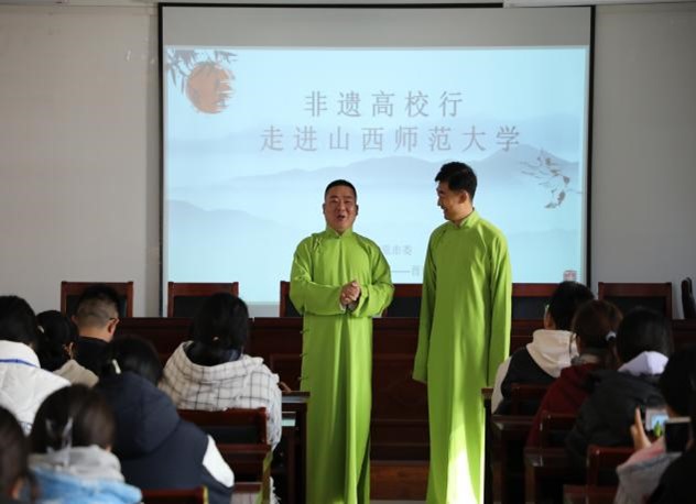 活动现场,观众们不仅能够亲眼目睹非遗相声的精湛表演,还可以通过老师们详细的解说,了解到非遗背后的历史渊源、文化内涵。段建强老师用风趣而滑稽的语言介绍了相声的基础知识、语言艺术、表演技巧,其间穿插的绕口令将活动的氛围推向了高潮,最后,现场表演的一段《对对联》,更是赢得了台下同学们的阵阵喝彩和掌声。