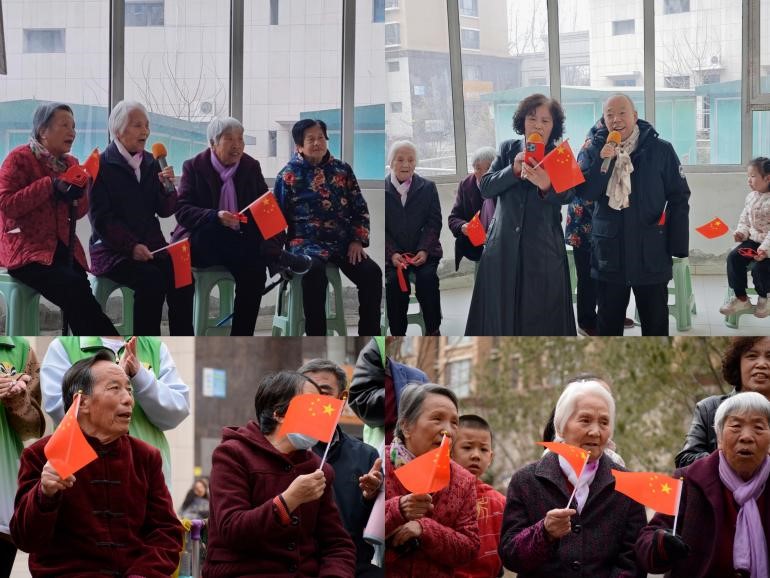 活动伊始,志愿者们有序引导小朋友开展“红心向党”创意剪纸和“祖国在我心中”纸上彩绘,老年朋友们开展红歌传唱活动,《没有共产党就没有新中国》《十送红军》等经典老歌余音绕梁,现场一片其乐融融。